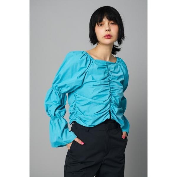 女性らしいデザインをカジュアルなナイロン素材に落とし込んだアイテム。たっぷりとギャザーを寄せ首周りはすっきりとした女性らしいデザインに。袖にはボリューム感を持たせ袖口などにデザインを入れています。シワ感のある素材でシワも気にならずストレスフリーな着用感がうれしい。カジュアルにデニム合わせもおすすめ。ナイロン100%ながら、表面に自然な風合いのシワ加工が施されたしなやかな素材を使用しました。パフスリーブトップス