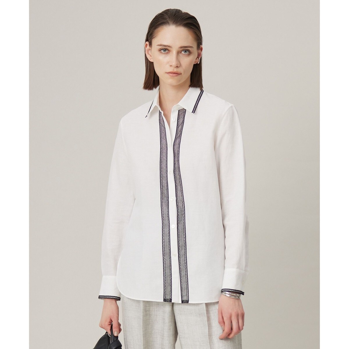 繊細な刺繍がコーディネートに映える、上質大人ブラウス