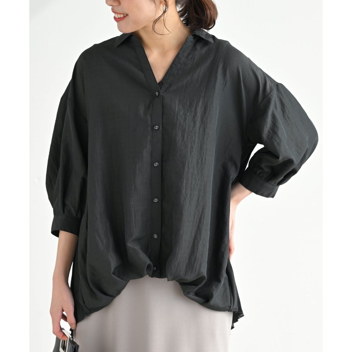 【洗える/大人シアー】タックプリーツ7分袖ブラウス
