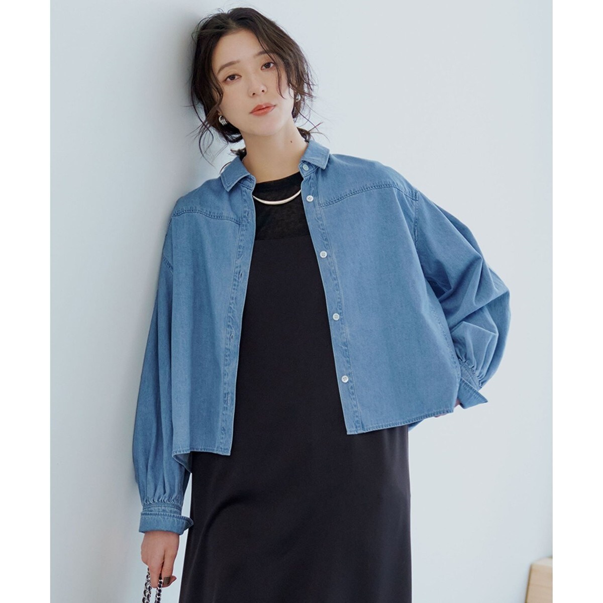 トレンド感のあるボリュームスリーブ×クロップド丈のデニムシャツ