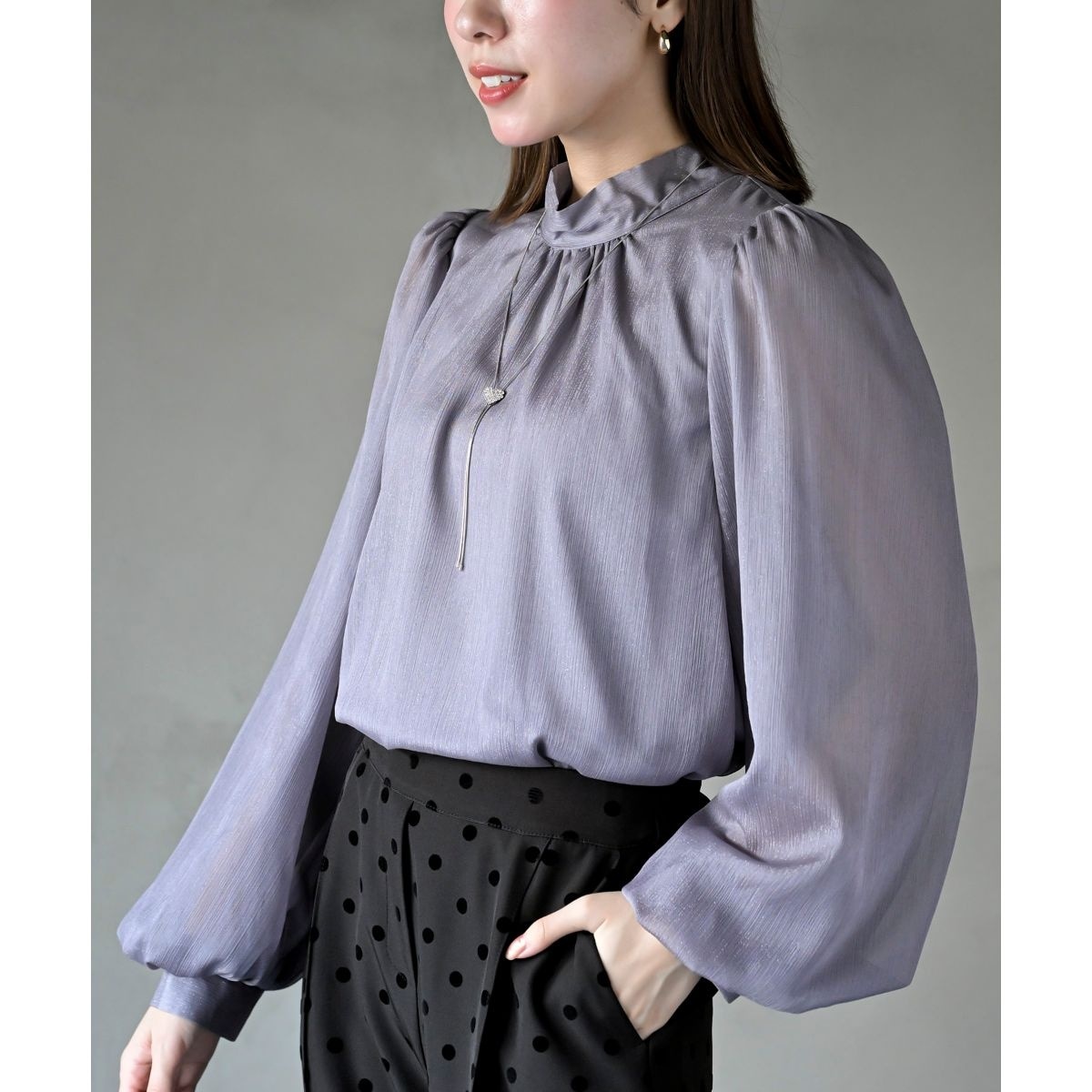 バルーンスリーブラメ2wayブラウス