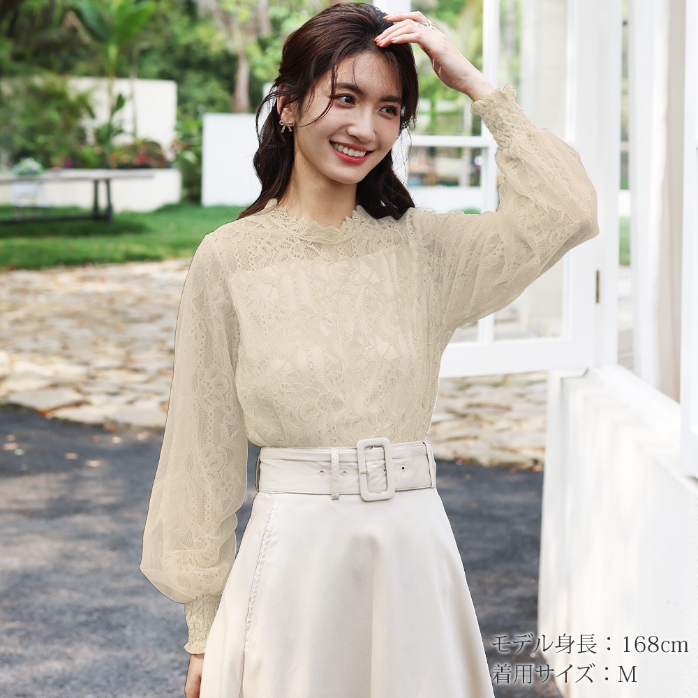 ホワイト レース刺繍 バルーンスリーブブラウス/F