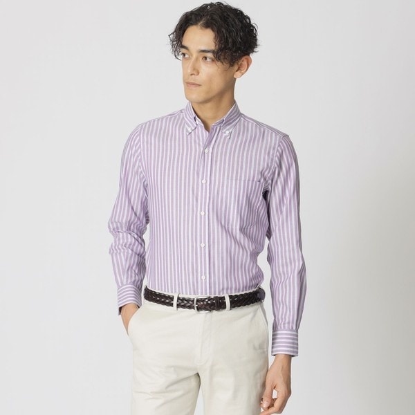 上品な印象を与えるストライプシャツなので、ネクタイの有無を問わずジャケットに合わせて着用していただけますし、カジュアルスタイルのシャツとして、一枚でコーディネートもしていただけます。