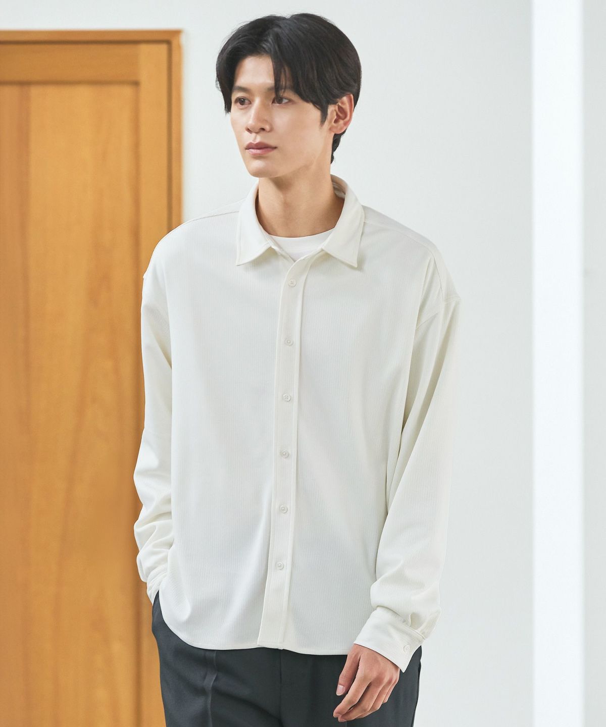 <ESSENTIALS WARDROBE>抗しわ吸汗速乾機能性長袖ブロードシャツ