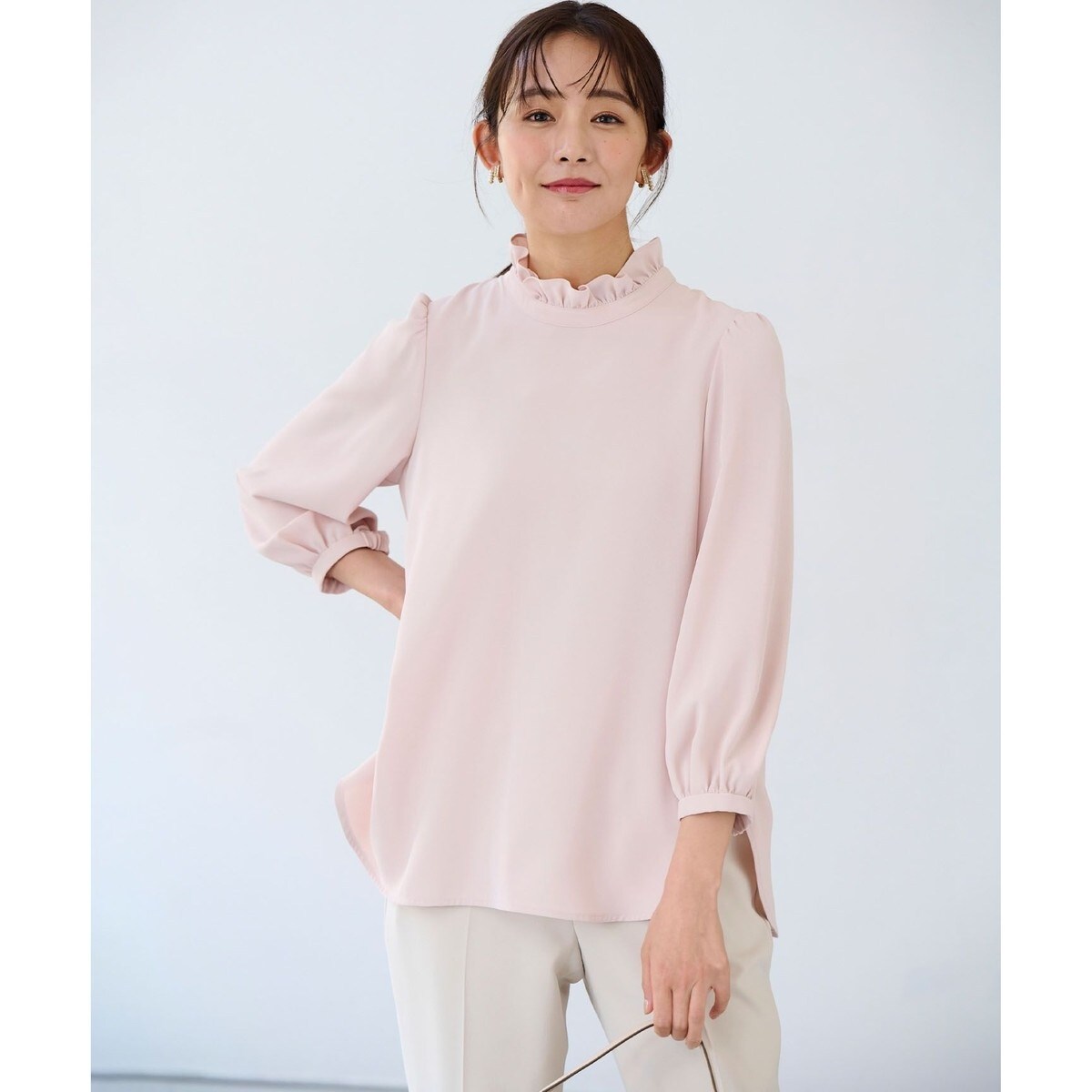 \デイリーからハレの日まで/柔らかなとろみ素材でエレガントに映える、スタンドフリル襟ブラウス