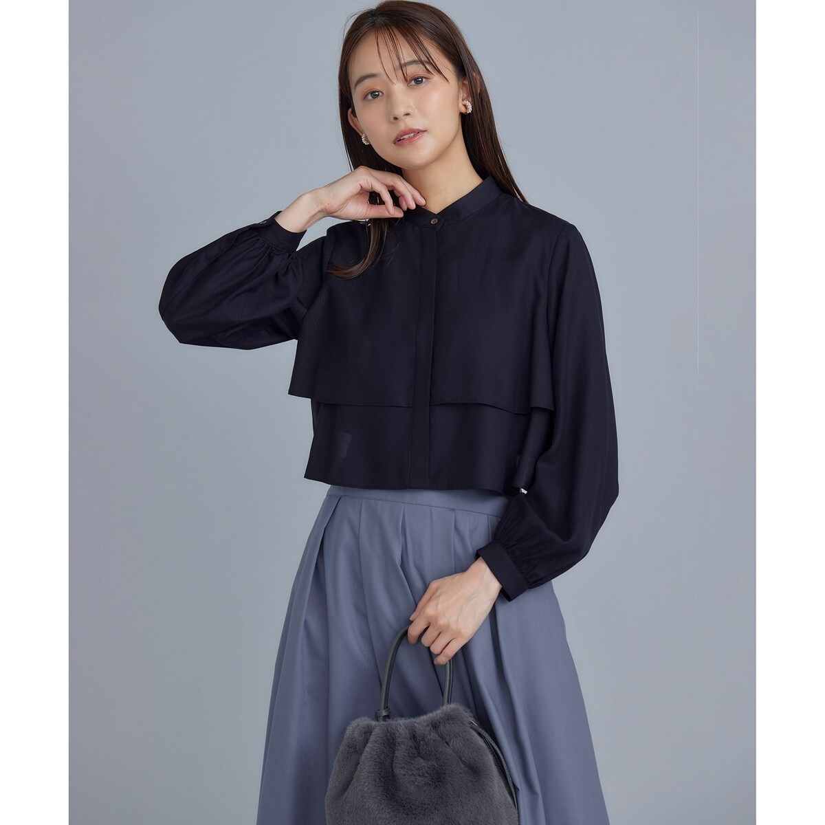 ■デザイン360度抜け目なく、スカートやパンツと合わせるだけで気の利いたコーディネートに仕上がるフリルシャツ。裾をインすると流行のクロップドトップスのようなスタイルに。前回より、インした際のフリルがきれいに見えるようデザインをアップデートしました。大胆なフリルなので甘くなりすぎないように、全体のシルエットや襟や袖の形状など、少しだけモードな要素を取り入れています。釦を閉めて着たときに襟元が詰まりすぎないように、程よく首周りにゆとりを持たせ、すっきりとした印象に見えるようにしており、1枚でも羽織りでも着こなしが広がります。甘さ控えめな広がりすぎないフォルムだから、オフィスでも品よく映えます。スタイリングによって綺麗めからカジュアルまで雰囲気をかえられる万能ブラウスです。