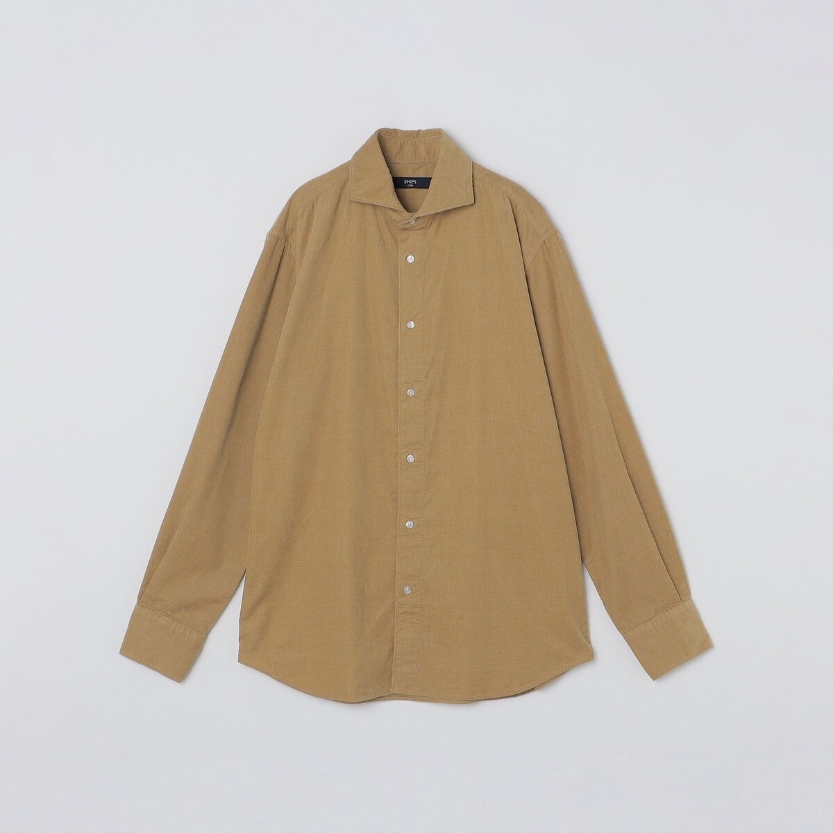 引き続き注目のコーデュロイ素材を使用した、ドレカジにピッタリなワイドカラーシャツ。