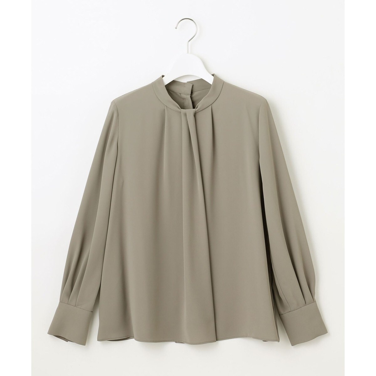 ■デザインボウタイのように見えるデザインがポイントのブラウスです。フロントの華やかなデザインは1枚で着るのはもちろん、ジャケットと合わせた時に襟が綺麗に収まるのでインナーにもおすすめです。同素材のプリーツスカート(SKWMCW0412)や切り替え無しプリーツスカート(SKWMGW0323)とセットアップでも着て頂けます。オフィスやセレモニー、フォーマルシーンで使いやすい無地と、丸みのある四角のモチーフの周りにアクセントとして色を加えた柄(554)、幾何柄を崩したようなドット柄(505)と新色のドット柄(533)の展開です。■素材適度な肉感で重くなく、ハリ感とドレープ性のあるポリエステル素材です。マットな質感とソフトな風合いで、ナチュラルなストレッチ性があり着心地の良い素材です。シワになりにくいのもポイントです。■同素材アイテムワンピース(OPWMCW0412)プリーツスカート(SKWMCW0412)切り替え無しプリーツスカート(SKWMGW0323)