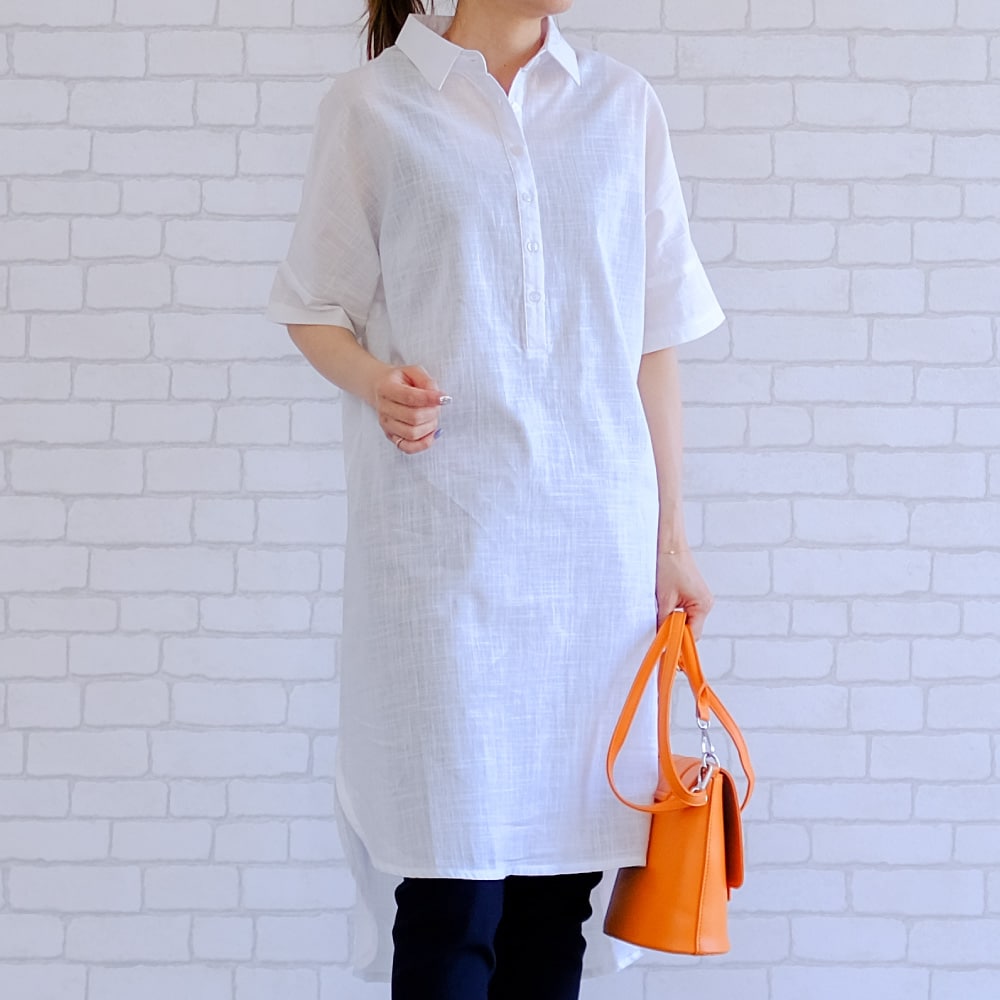Ciaopanic ホワイト 5分袖 シャツワンピース チュニック