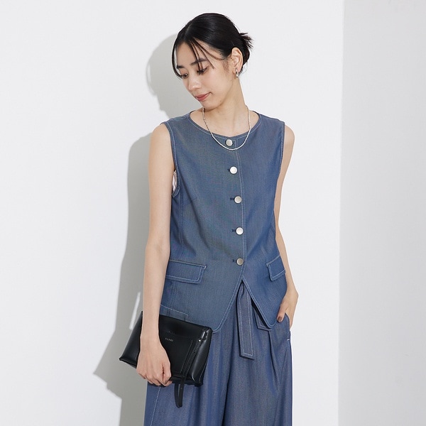 滑らかなテンセルデニム素材で仕立てたノースリーブブラウス。