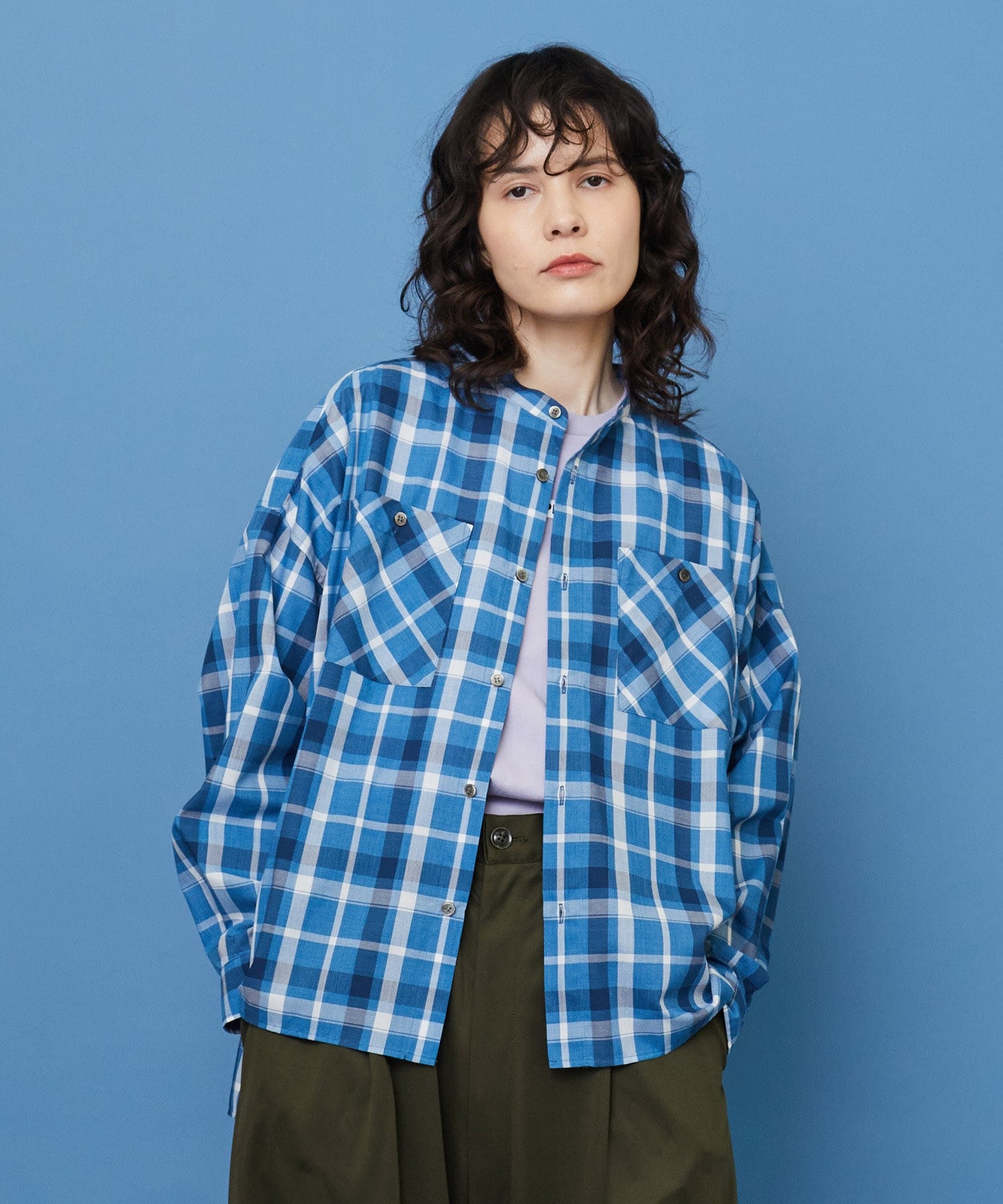 フロントのダブルポケットの柄を身頃とずらしていたり、スッキリとした印象のバンドカラーなど、シンプルな中にもこだわりが効いたアイテムになっています。