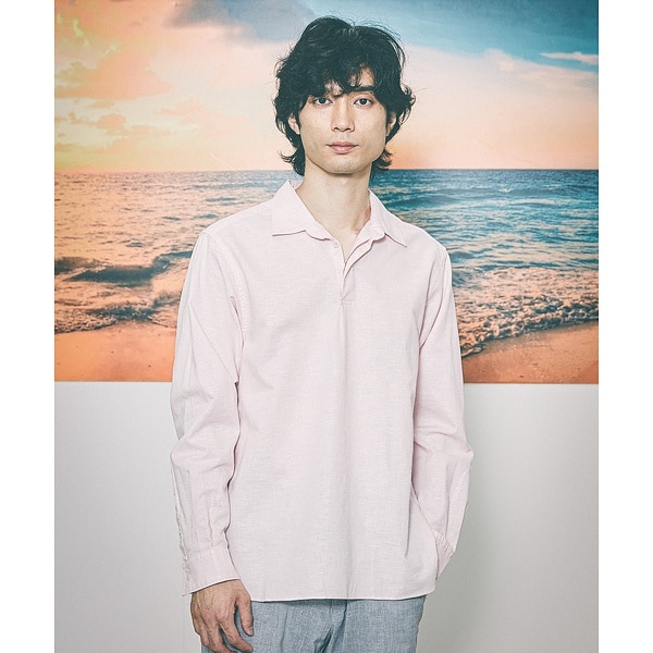 小ぶりなレギュラーカラーがポイントで、ややミニマルな印象に。上品すぎず程良くラフな仕上がりなので、夏のリゾートスタイルにもオススメです。