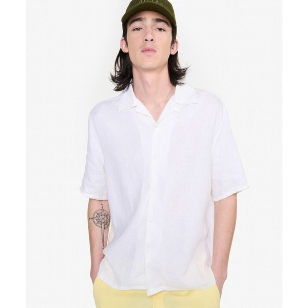 【送料無料】トミーヒルフィガー オックスフォードシャツ リネンシャツ 刺繍ロゴ ワンポイントロゴ 白 TOMMY HILFIGER M 古着 @CA9011