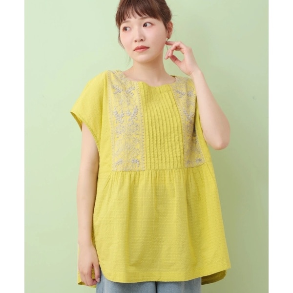 胸元の細かなピンタックや、全面に入れたポコポコとしたドット模様のような細やかな刺繍が表情豊かです。
