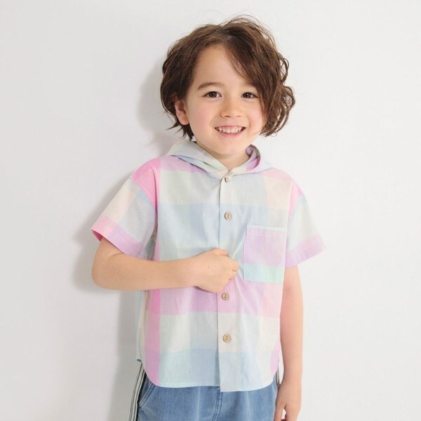 新品 半袖シャツパーカー 100cm マドラスチェック柄半袖シャツパーカー