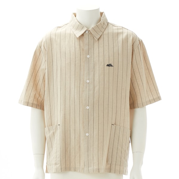 2種類のストライプ素材を使用したレギュラーカラー半袖シャツです。