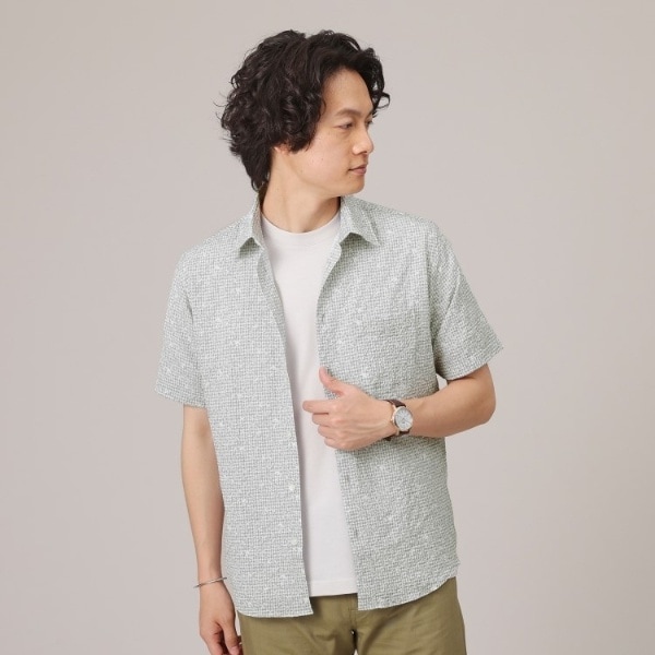 凸凹したシワのある表面感が特徴のリップル生地にプリントを施した半袖シャツ。