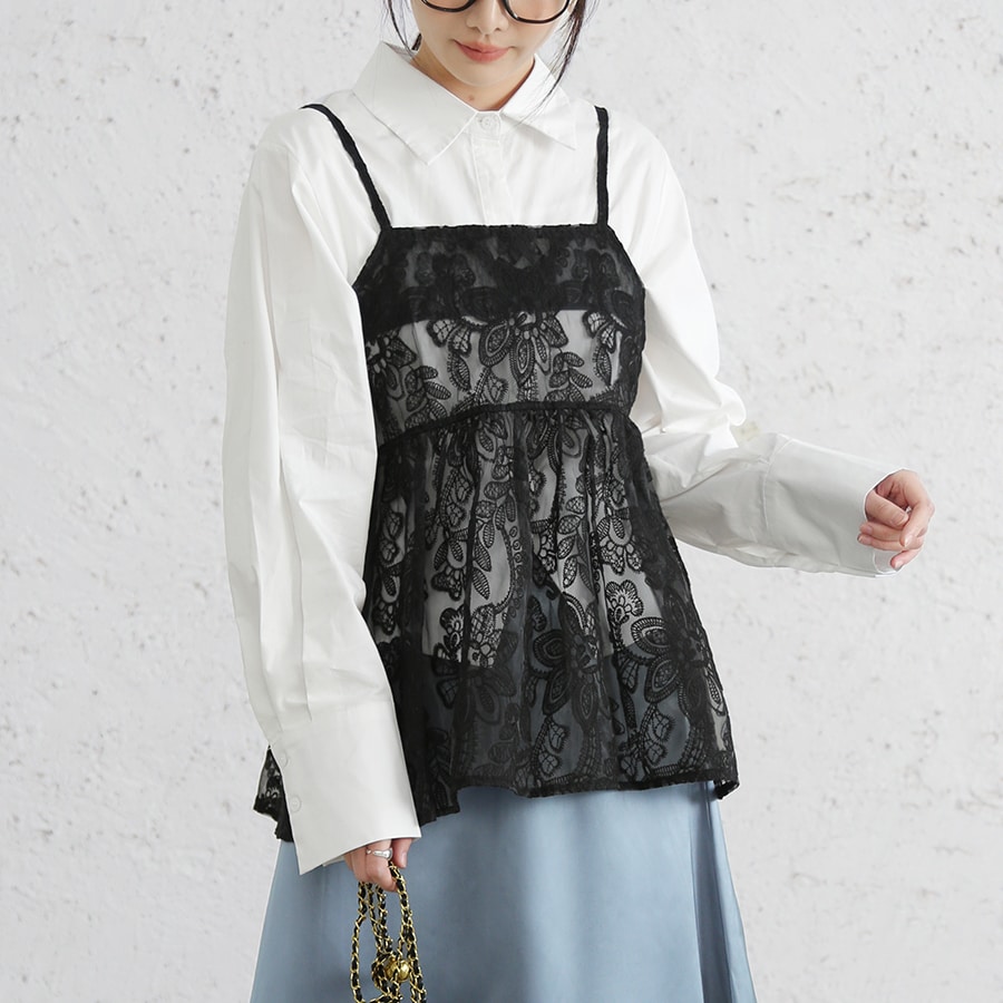 シアーフラワー刺繍キャミソールトップス[pp224]