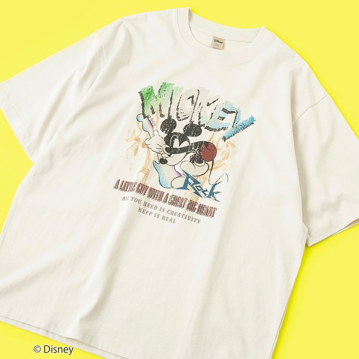・ヴィンテージ加工と甘さを抑えたプリントで大人も着やすい「ミッキー」Tシャツ