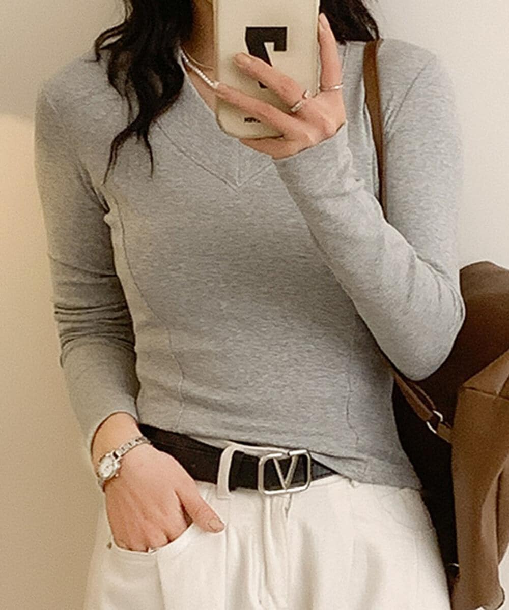 デコルテ周りをきれいに見せてくれるヘルシーなVネック。フィット感のあるシルエットで、1枚でももちろん、ジャケットなどのインナーとしても使えるアイテム。普段使いはもちろん、オフィスシーンにも着まわせるベーシックなニットトップスです。