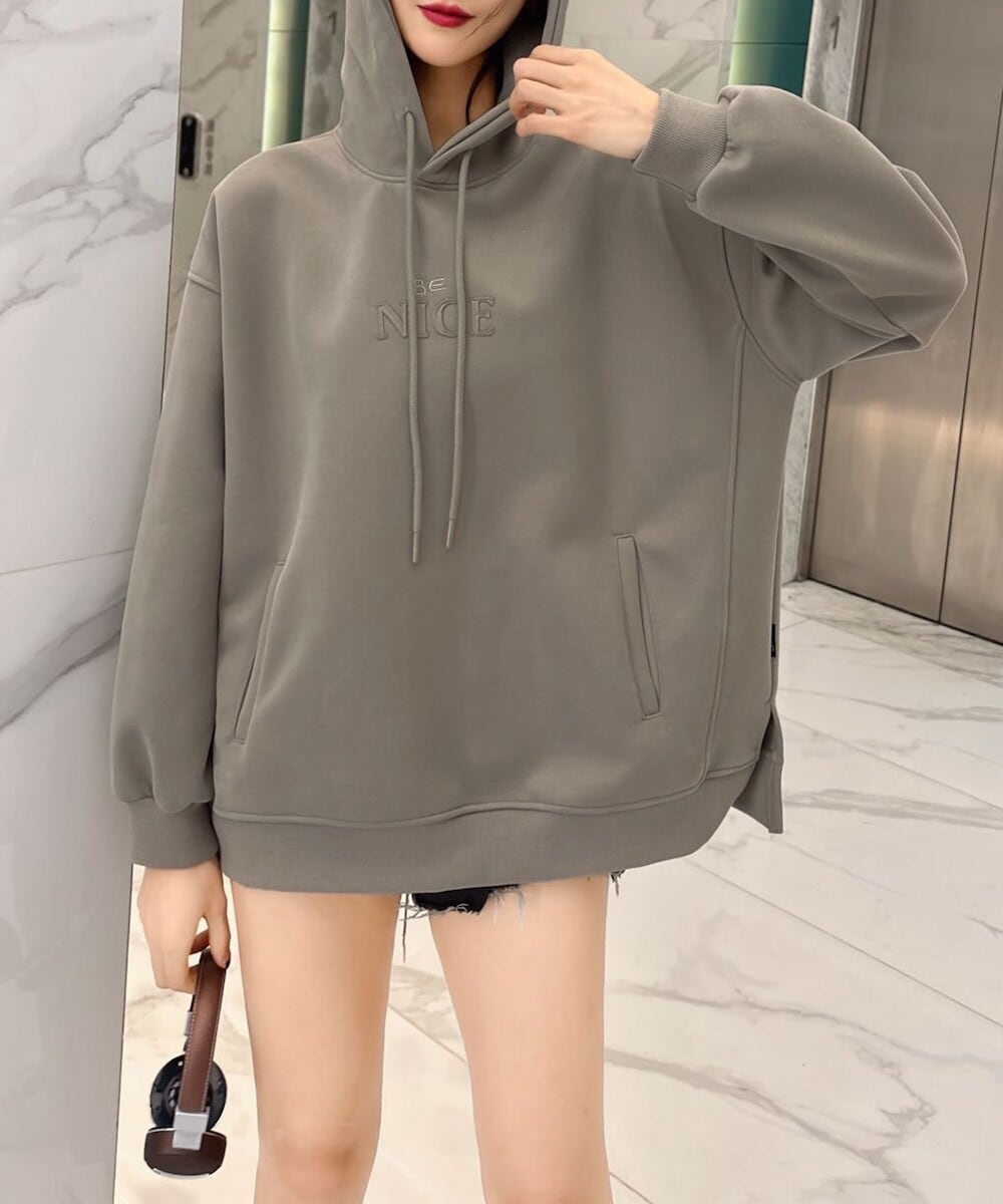 肌触りの良い生地とリラックスフィットで、デイリーカジュアルにぴったり。フロントの「NICE」のロゴ刺繍がポイント!