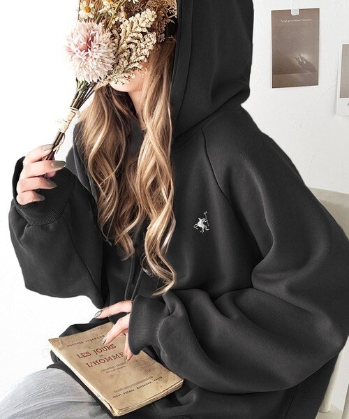 【L】PINK フロントジッパー 黒 パーカー 古着 羽織 スエット