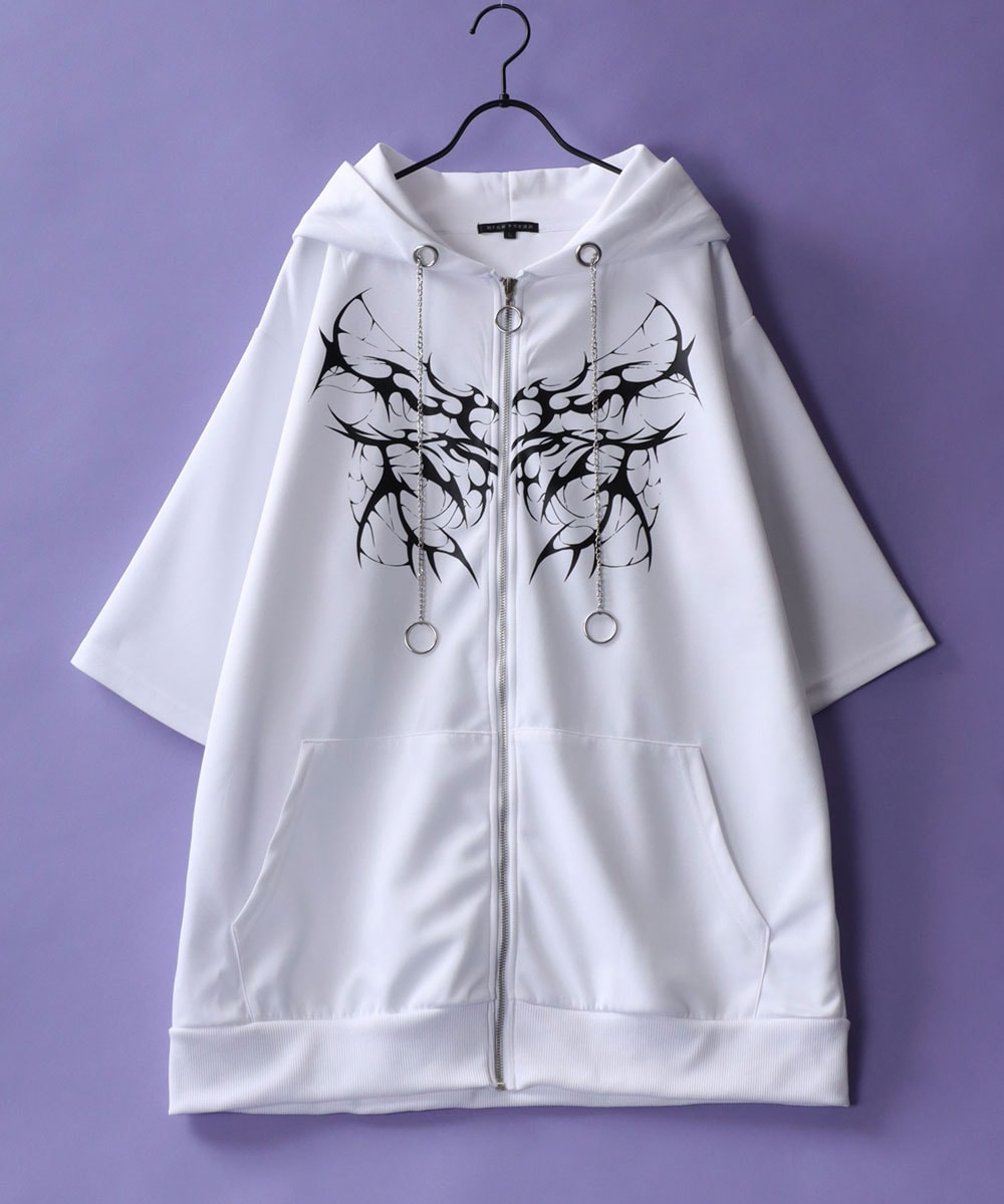モノトーンを基調にしたワイドパンツやカーゴパンツ、スキニーパンツと合わせれば人気のサブカル系や病み系、地雷系のコーデが完成。