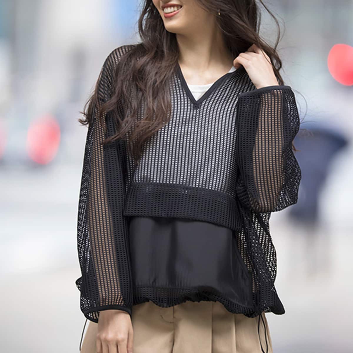 ・メッシュのシアーな抜け感が涼し気コーデに鮮度をプラス。