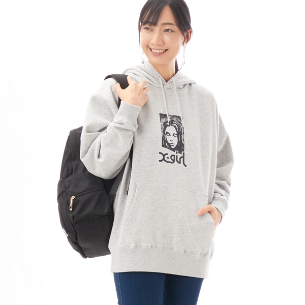 フロントのX-girlフェイスロゴが印象的なデザイン。