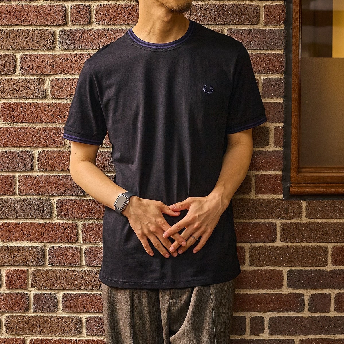 FRED PERRY フレッドペリー シップス別注 ソロテックスTシャツ 紺色