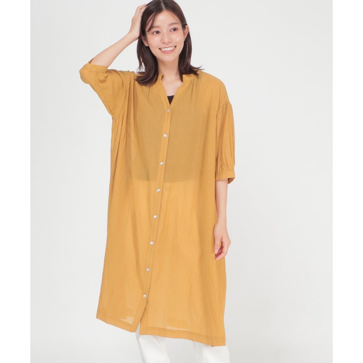 ほんのりシアー感のあるシャツワンピース。