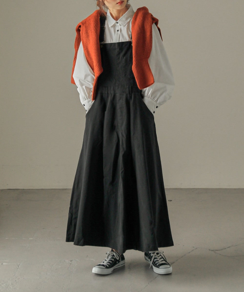 体型カバーもできるサロペスカート。