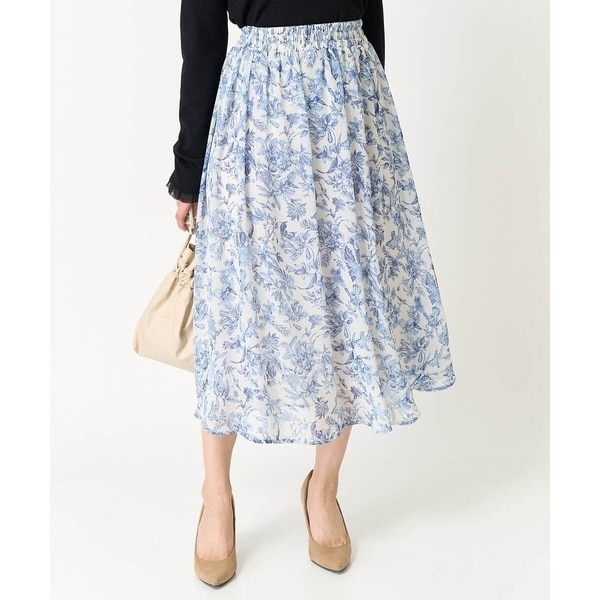 繊細なタッチで表現された花柄のシフォンスカート。落ち感がある素材は広がりすぎないので甘くなりすぎず大人っぽく着こなせます。ウエストゴムでストレスフリーな着心地も嬉しい。
