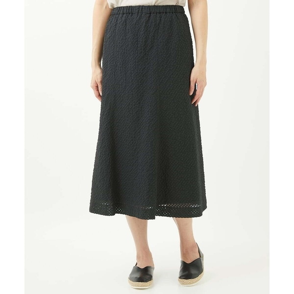 無地見えするスカートなので、トップスはシンプルなものから柄物まで、合わせやすいアイテムです。定番はサマーニットやカットソーなどとの組み合わせですが、同素材のジレ(NGBGV30290)や羽織り(NGDGV30360)とセットアップ風に着こなしていただくのもおすすめです。