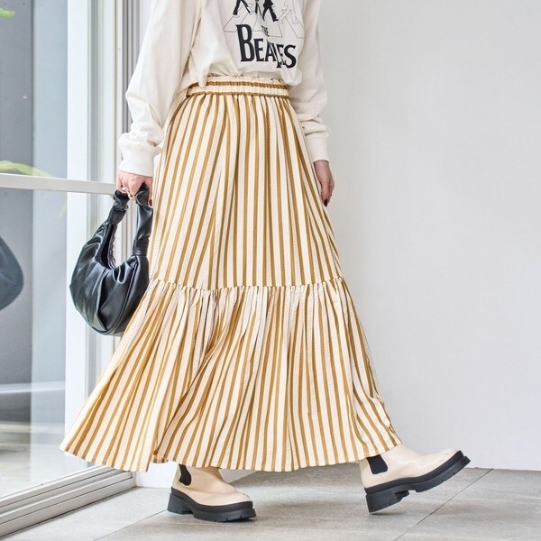 太めのストライプが存在感たっぷりなティアードスカート