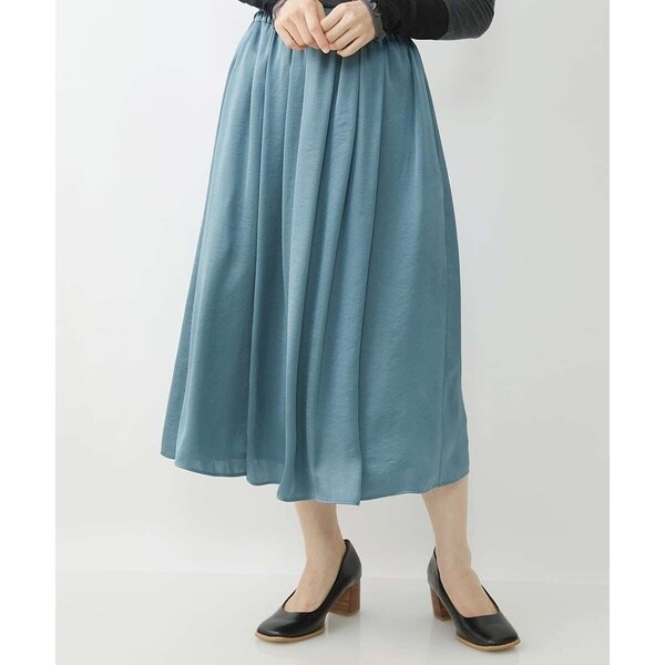 光沢感が上品さのある旬のサテン生地を使用したデザインスカート。