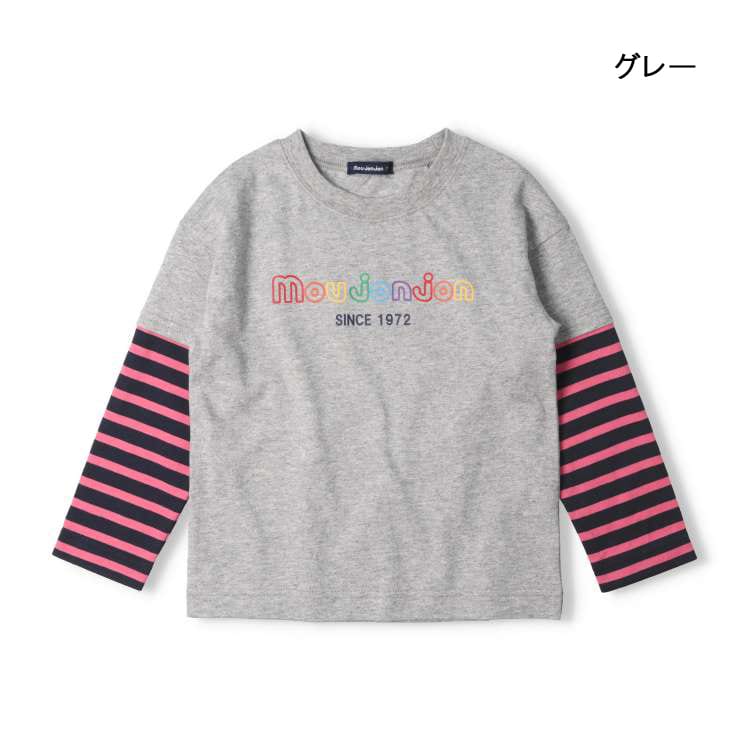 長袖 レイヤード風 Tシャツ ロゴT モノトーン ボーダー オーバーサイズ 韓国