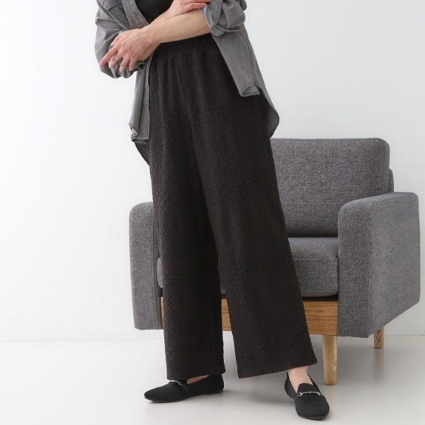 【S-LL】目を惹く柄がアクセント 麻調イージーワイドパンツ