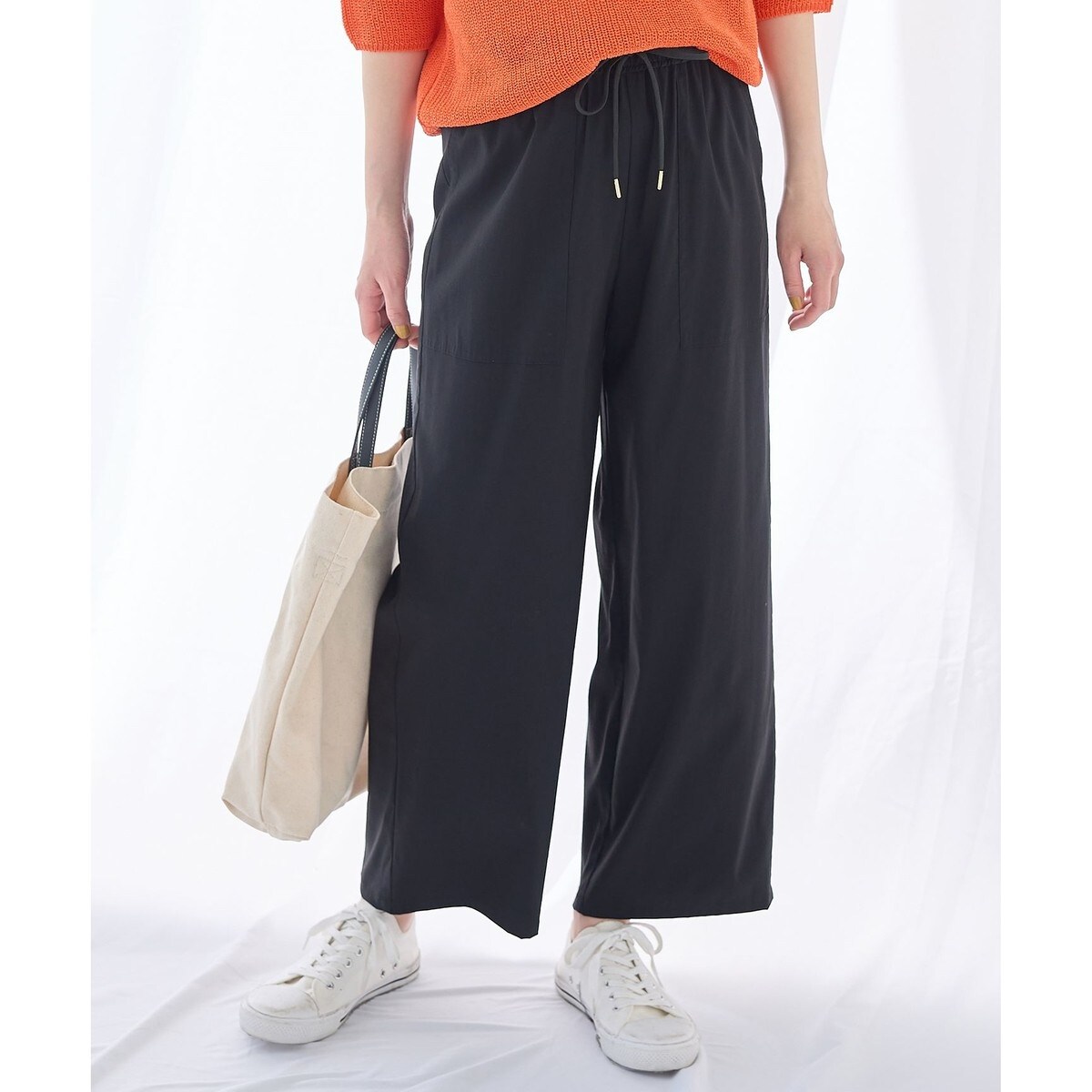 ・ウエストゴムで、ゆったりと穿いていただける・ベイカーポケットなので、シンプルなトップスと合わせても一味違うスタイリングになる万能パンツ・丸紐と弾丸チップがさりげないアクセントに