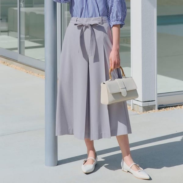 スカートのように見えるインパーテッドプリーツが特徴のパンツ。