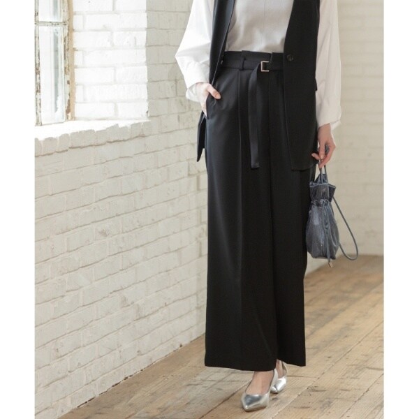 ・共地ベルト付きがポイントのタック入りワイドパンツ。