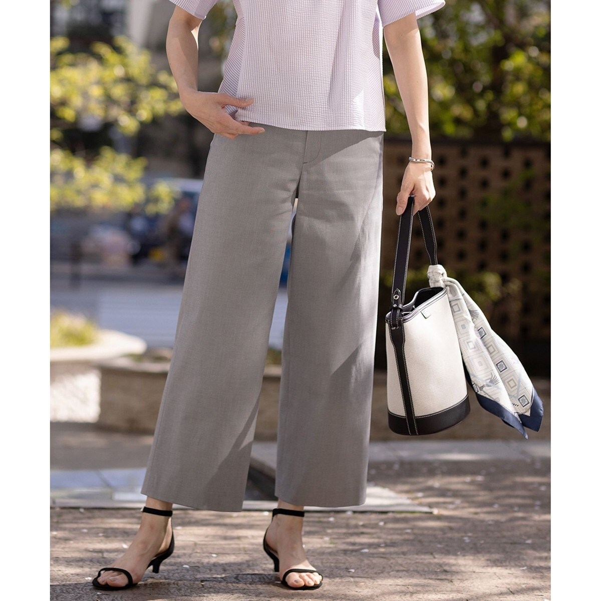 ■デザイン無駄のないシルエットが、品よくすっきりとした印象を与えるストレートパンツ。ウエスト部分はタブと釦ディテールを施し、トップスをインしてもスマートに決まるデザインです。後ろウェスト部分はゴム仕様で、程よくフィットしながらも快適な穿き心地を実現。カジュアルな着こなしにも、きれい目なスタイリングにも馴染む万能なパンツです。同素材のジャケットやスカートとのセットアップで決めれば、セレモニーや通勤シーンにも対応可能。シーンを選ばず長く愛用できる、大人のワードローブに欠かせないアイテムです。裏地なしです。