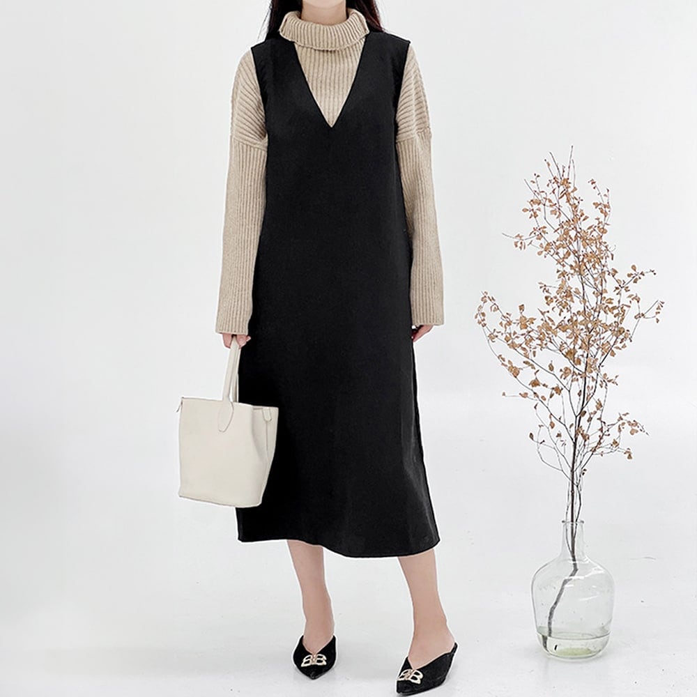 新品☆L~LL♪おしゃれ重ね着コーデ♪マキシ丈ジャンスカ&リブカットソー〇B889