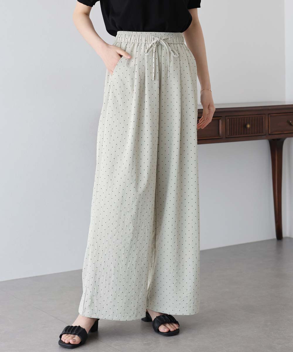 軽やかな素材感が魅力のドットワイドパンツ。