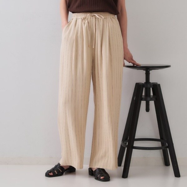 麻混の夏らしい清涼感あるストライプ柄イージーパンツ