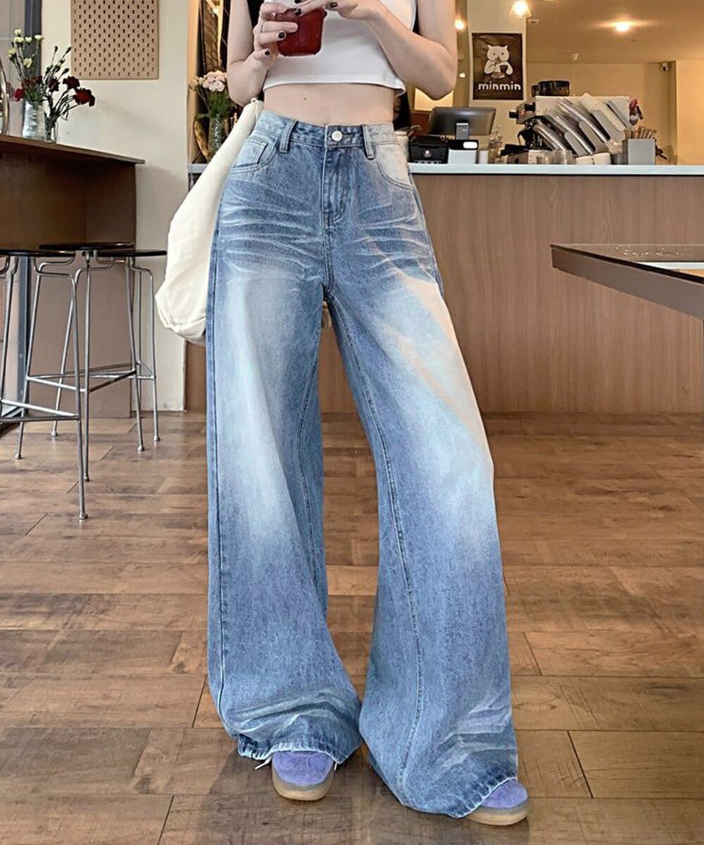 ゆったりとしたシルエットが魅力のワイドデニムパンツ
