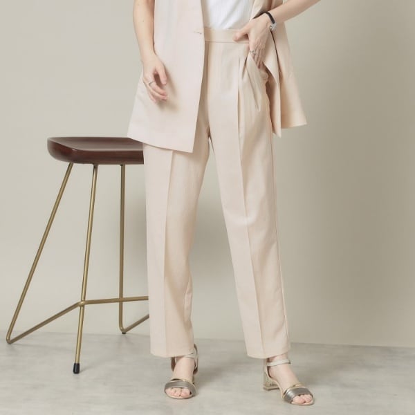 【セットアップ可】さらりと軽やか 麻調ゆるカーブパンツ
