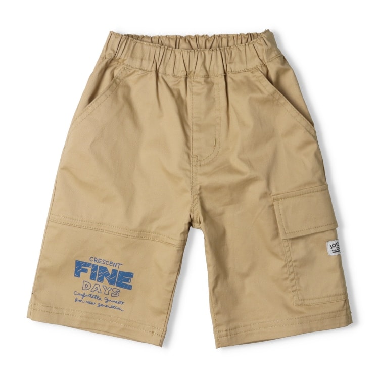 アシンメトリーのデザインをデティールに取り入れたツイルとデニムのハーフパンツ。膝が隠れるくらいの6分丈。トップスを選ばないベーシックなカラーリングが便利なアイテム。【アイテム】シンプル ベーシック 無地 カジュアル お洒落 オシャレ かっこいい かわいい 可愛い 普段着 お外着 お外遊び着 デイリーウェア お出かけ着 ハーフパンツ 短パン 半パン 半ズボン ボトムス 子ども こども 男児 男の子 ボーイズ キッズ ベビーサイズ トドラーサイズ 幼稚園 保育園 小学校 通園 通学 小学生 2025年春夏物新作 丸高衣料 ネイビー 紺色 ベージュ クレセント