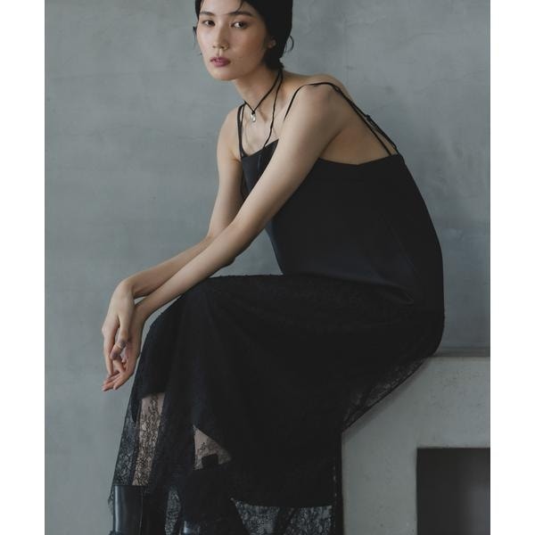華やかなレース使いが目を惹くワンピース。女性らしいサテンと華奢でランジェリーのような繊細なレース使いが今期らしい一枚。レース部分のギャザーも広がり過ぎない程のボリューム感に抑えることで甘すぎず大人っぽい印象に◎。肩紐は調節可能なので、Tシャツやシアーインナーにレイヤードスタイルも気軽に取り入れていただけます!