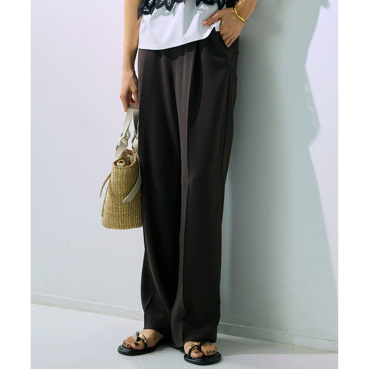 清涼感のある肌触りで、初夏~秋口まで心地よく過ごせるワイドパンツ